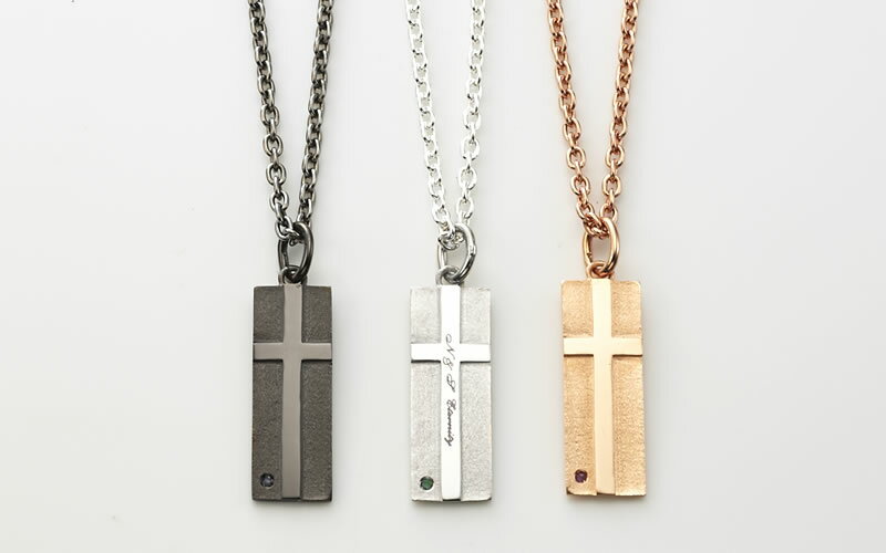 ペアネックレス 009N-KS-BKPK (SU) セミオーダーメイド 刻印無料 誕生石 シルバー 名入れ クロス 十字架 シルバー925 ペンダント ネックレス ペアルック カップル 彼氏 彼女 ブランド デザイン お揃い シンプル 誕生日 記念日 プレゼント 結婚記念日 送料無料 6月 7月