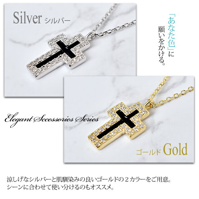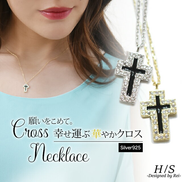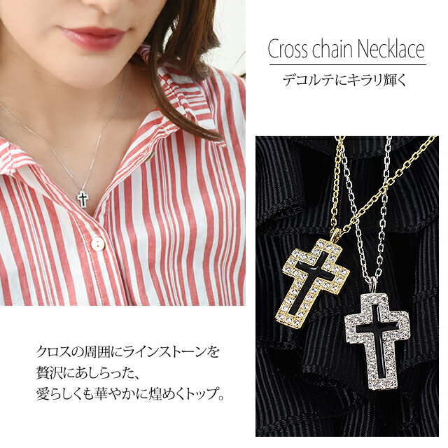 P5倍【あす楽】 ネックレス シルバー ゴールド レディース クロス 十字架 アクセサリー ラインストーン プレゼント パーティー 華奢 SV 夏 春 HUGU