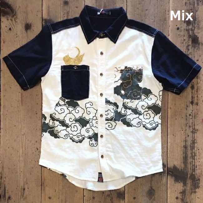 参丸一 サンマルイチ 妖怪蛙(カエル)雲唐草 粋でかわいい 和柄 半袖シャツ Wガーゼ素材 SSH-11045/Mix,Navy M L XL XXL(3L) サイズ 最も大きいサイズ XXLサイズは胸囲 120cm*送料無料 ギフト♪ 雪駄 メンズ と相性◎